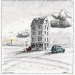 Een eenzaam, smal gebouw torent boven een uitgestrekte, lege vlakte, alsof het uit een droom is opgerezen. Voor de gevel staan een rode fauteuil en een tafellamp buiten opgesteld, als een huiskamer die de grenzen van binnen en buiten negeert. In de verte werpt een vuurtoren zijn licht over het surrealistische landschap, waar een 2cv en dreigende wolken de sfeer van verlatenheid versterken.